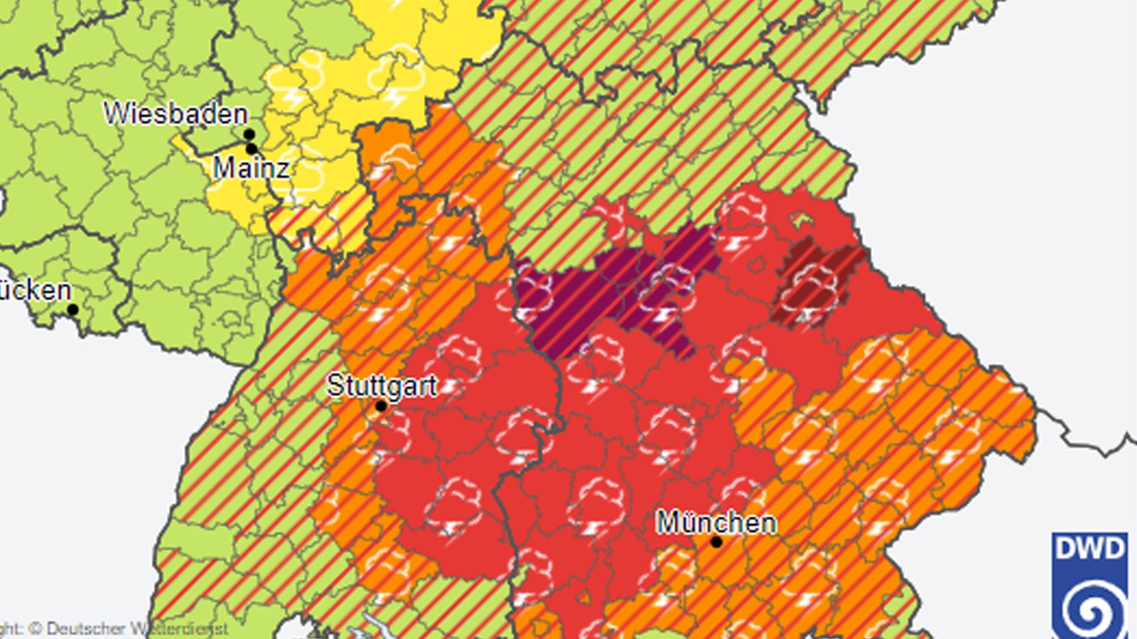 In Nordbayern und im höheren. Warnungen vor extremem Unwetter Stufe 4 Unwetterwarnungen Stufe 3 Warnungen vor markantem Wetter Stufe 2 Wetterwarnungen Stufe 1 Vorabinformation Unwetter. Im Laufe des Vormittags.